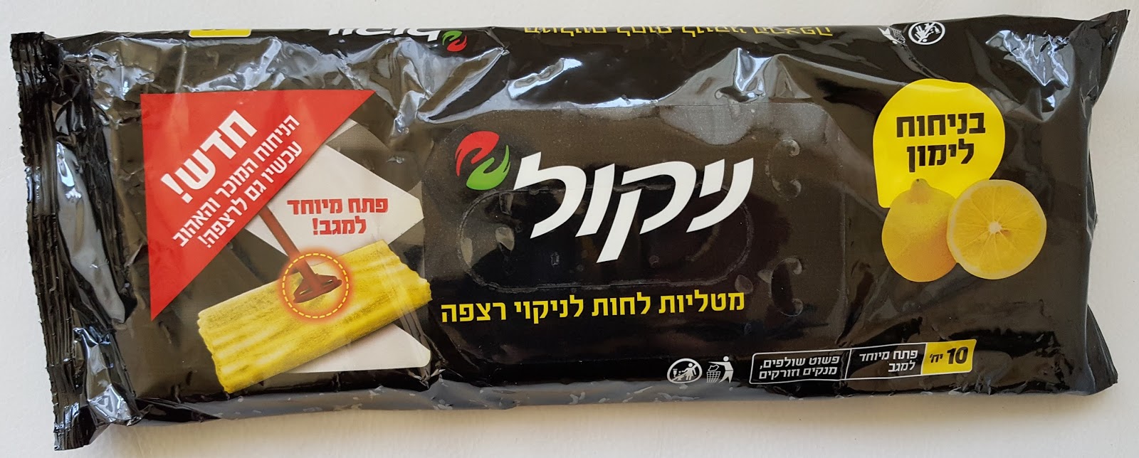כך למשל מטליות לחות לניקוי רצפה בעלי נוסחה ייעודית שאני "לא זזה" בלעדיהם. בכל פעם שילדים מלכלכים את הרצפה אני שולפת, מנקה וזורקת. למטליות פתח מיוחד למגב. עכשיו בניחוח לימון החדש, המעניק לבית ריח נפלא של ניקיון.