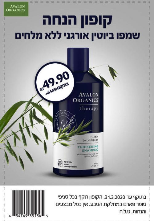 קבלו קופון הנחה לשמפו ביוטין אורגני ללא מלחים של Avalon.