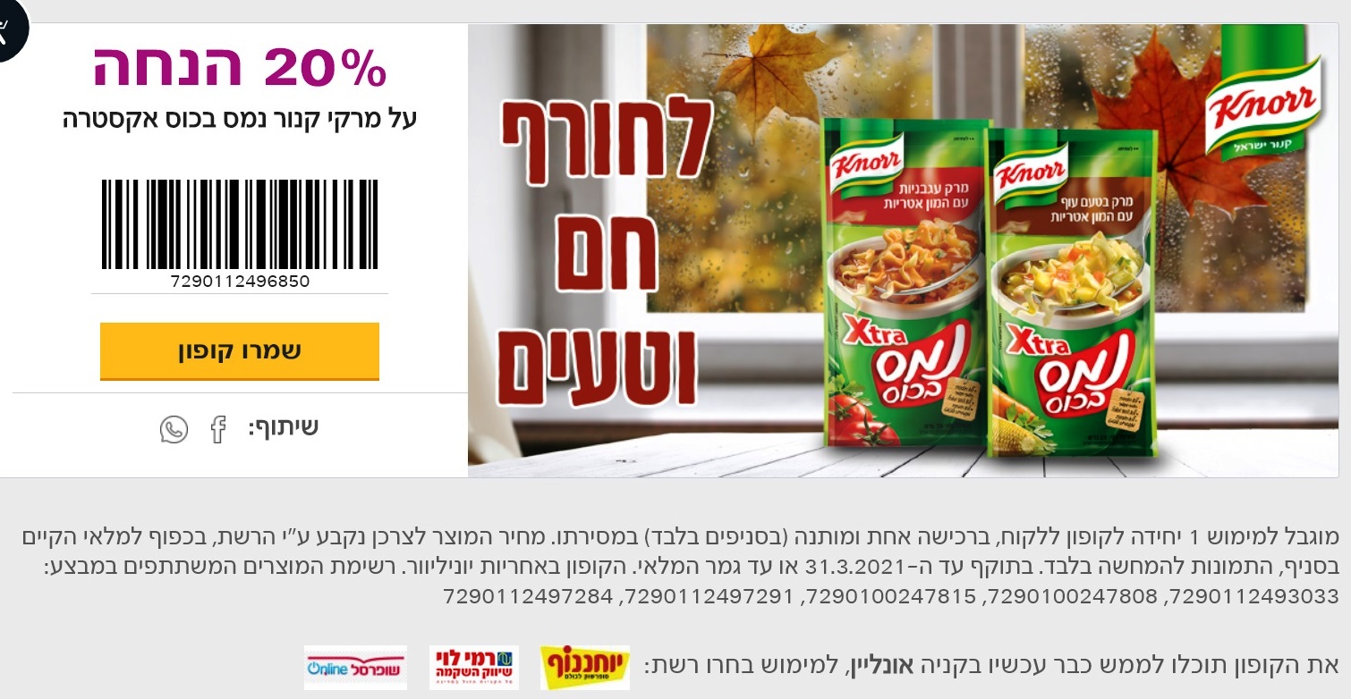 רשימת המוצרים המשתתפים במבצע: 7290112493033, 7290100247808, 7290100247815, 7290112497291, 7290112497284