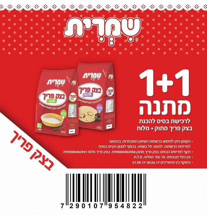 קבלו קופון 1+1 מתנה לרכישת בסיס להכנת בצק פריך