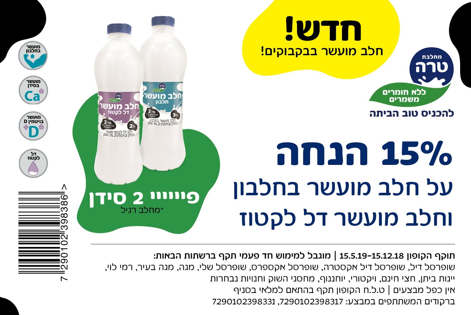 קבלו קופון 15% הנחה עד סדרת החלב המועשר ( חלב מעושר