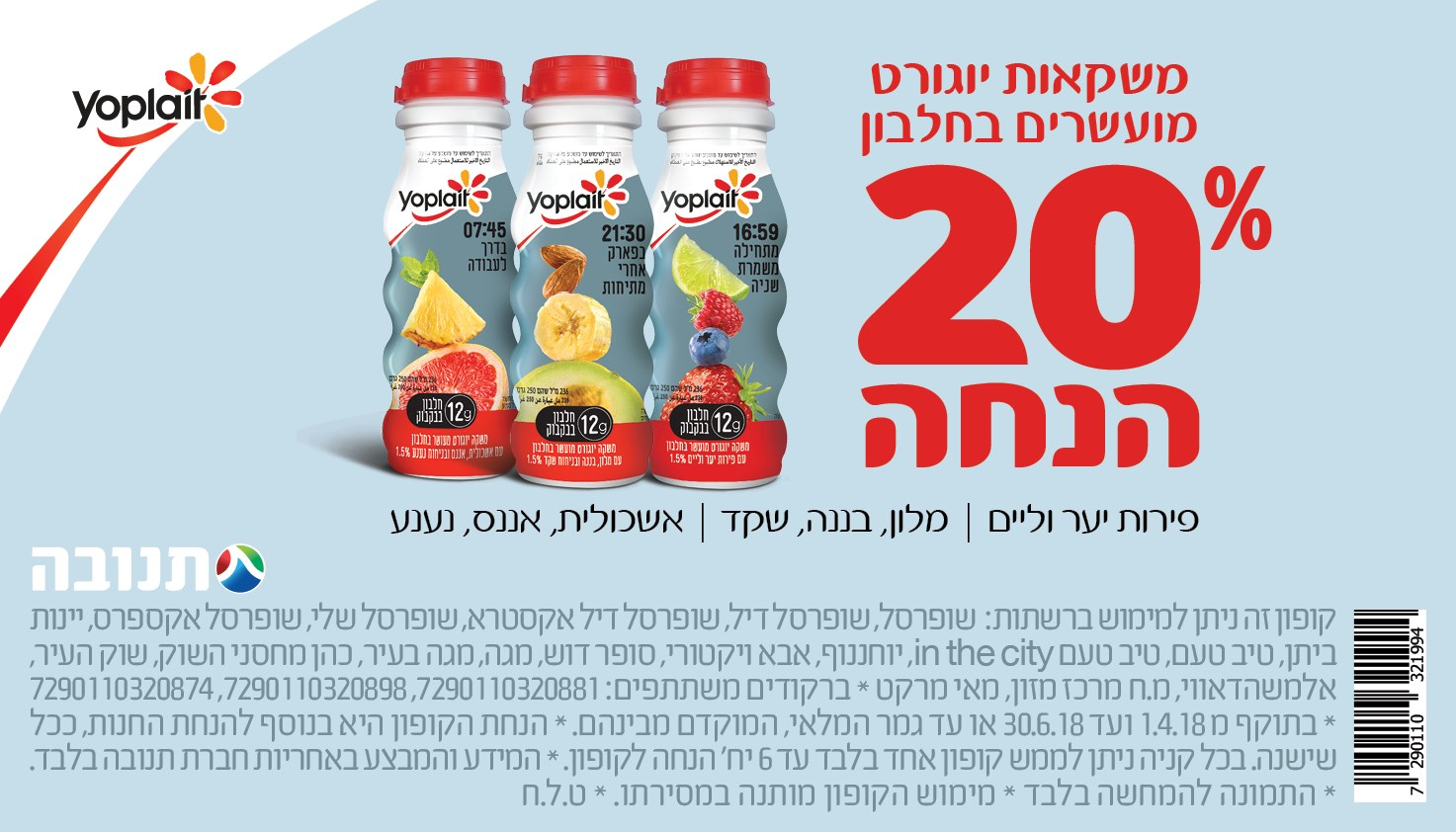 קבלו קופון 20% הנחה למשקה יוגורט יופלה מועשר בחלבון בטעמי