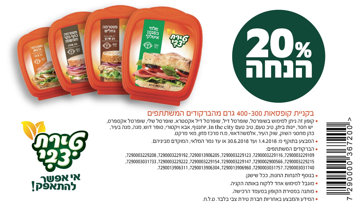 קבלו קופון 20% הנחה על נקניקים הארוזים במשקל 300 עד 400 גרם