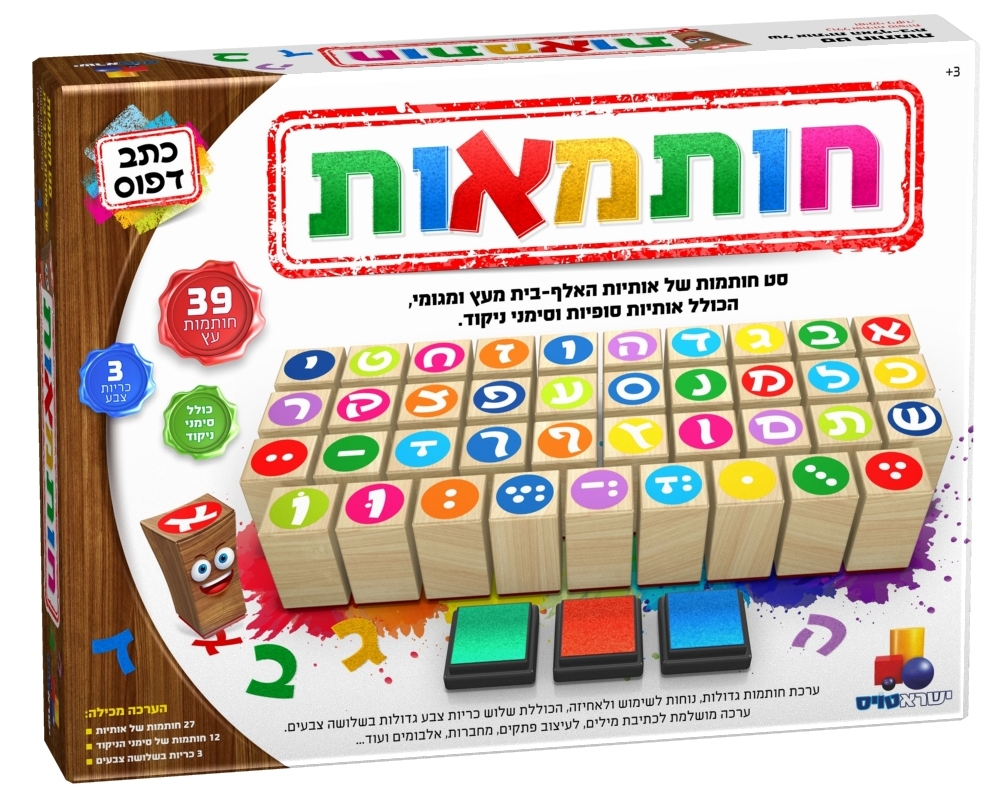 מדובר בערכות חותמות של אותיות האלף-בית מעץ וגומי, שכוללות את האותיות הסופיות ואת סימני הניקוד.